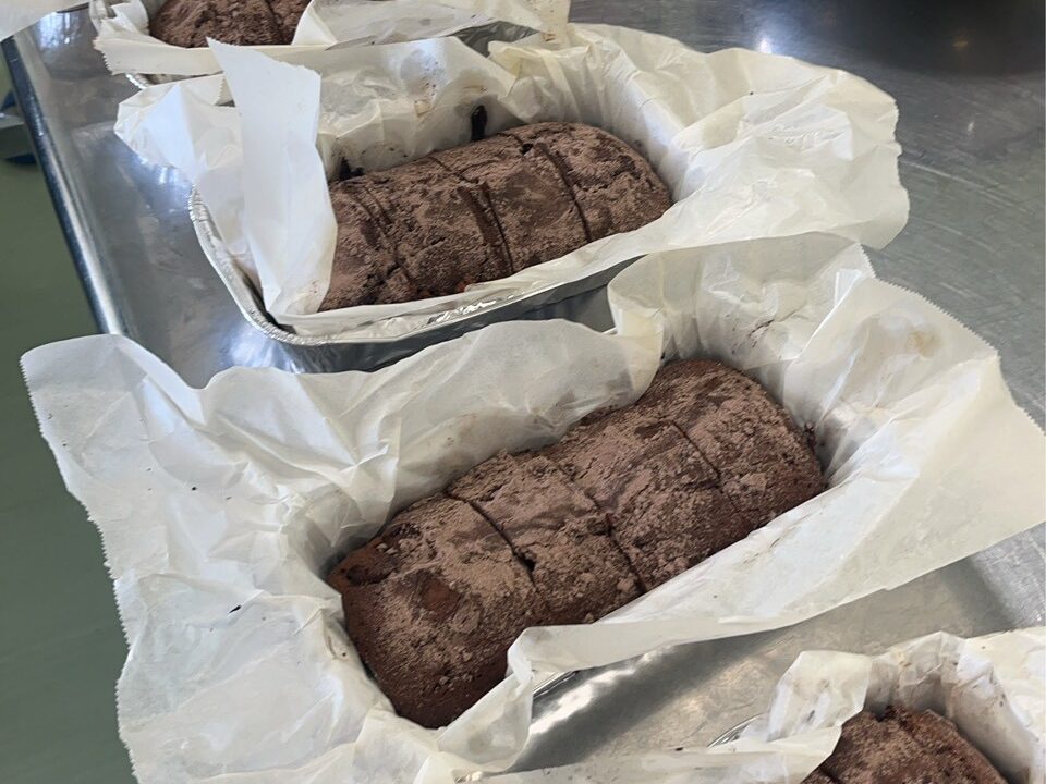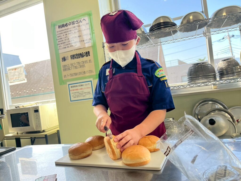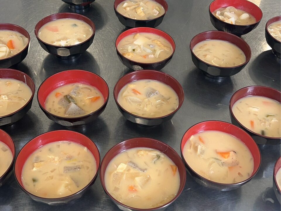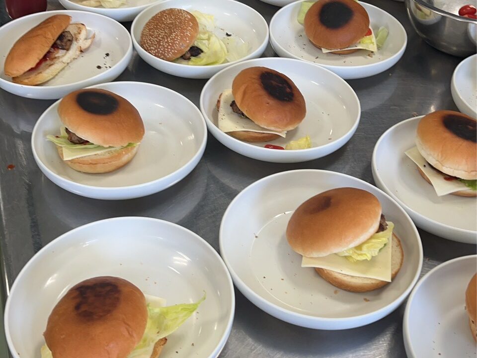 1組はチョコレートケーキと豚汁、2組はハンバーガーとポップコーンを作りました。